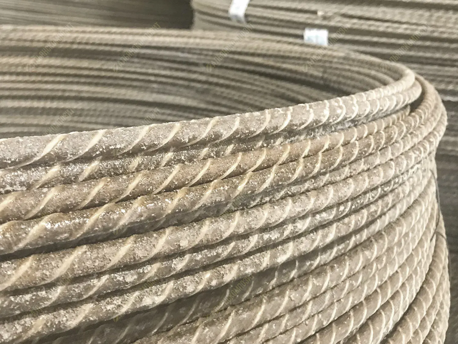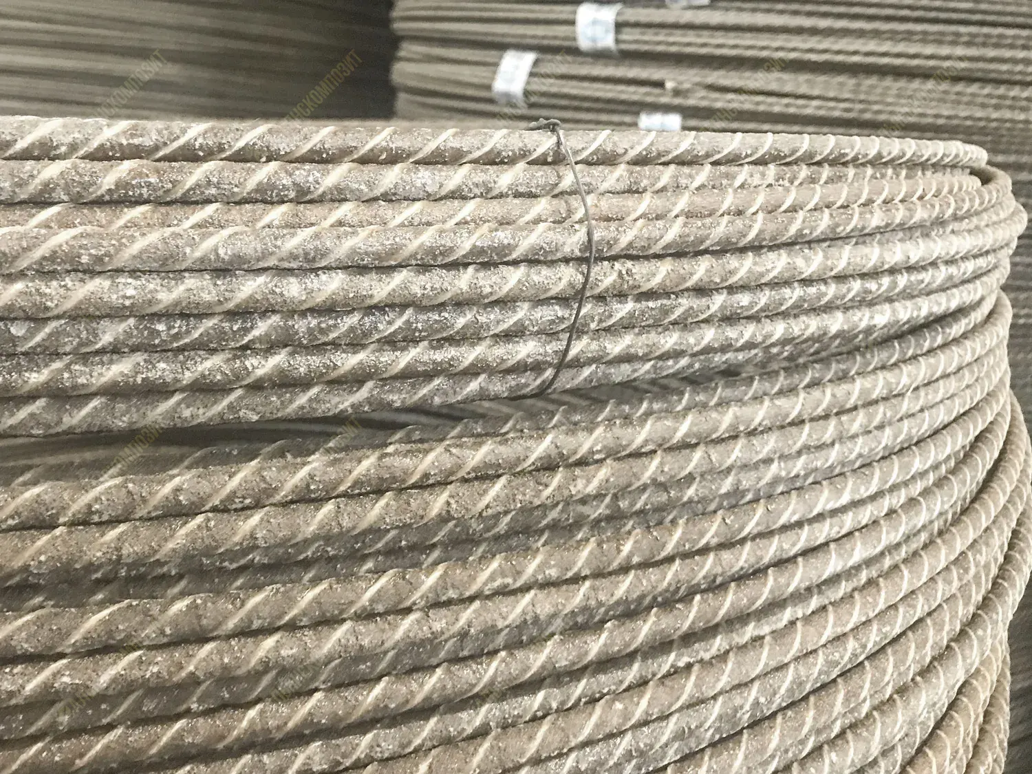 Арматура имеет внешнюю навивку из стекловолокна образуя "ребро" арматуры. Дополнительное внешнее ребро придает стержню периодический профиль, создает анкеровку в бетоне и увеличивает поверхность арматуры, что повышает сцепление стержня с бетоном.