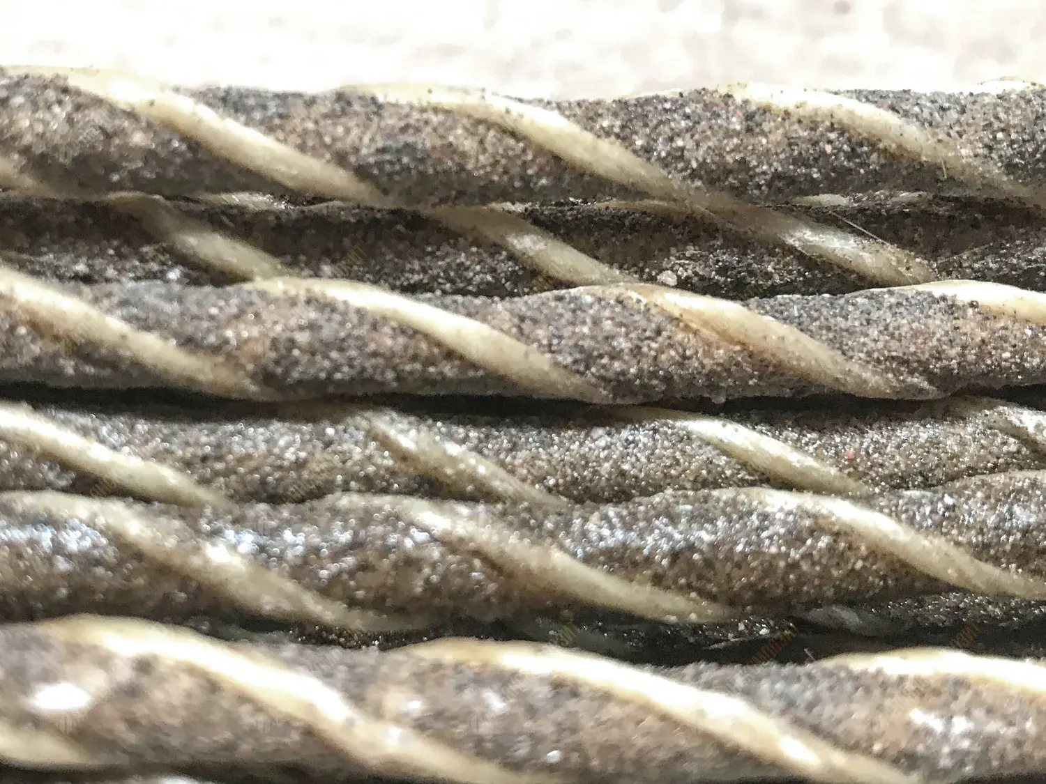 Материал стержня: стеклоровинг. Для уплотнения стеклянных волокон в стержне арматуры жгут стеклопластика перетянут нитью.