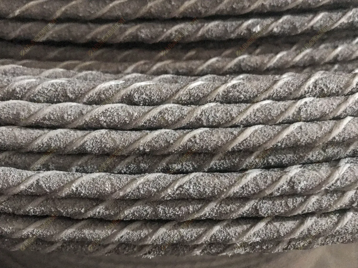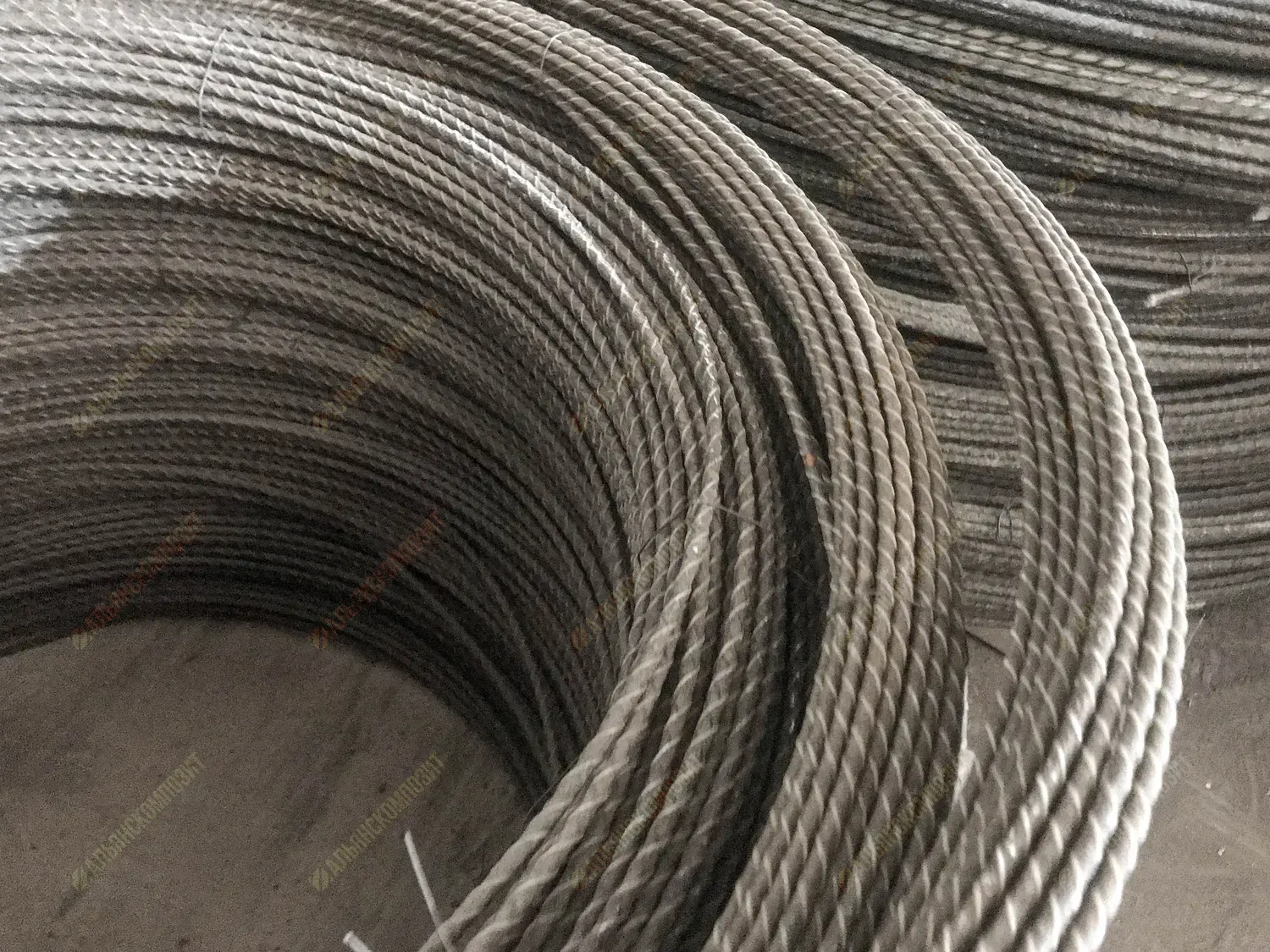 Материал стержня: стеклоровинг. Для уплотнения стеклянных волокон в стержне арматуры жгут стеклопластика перетянут нитью.