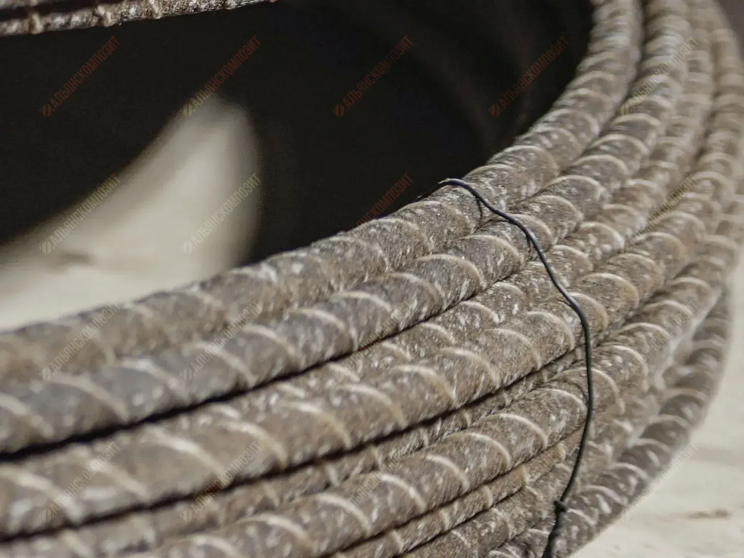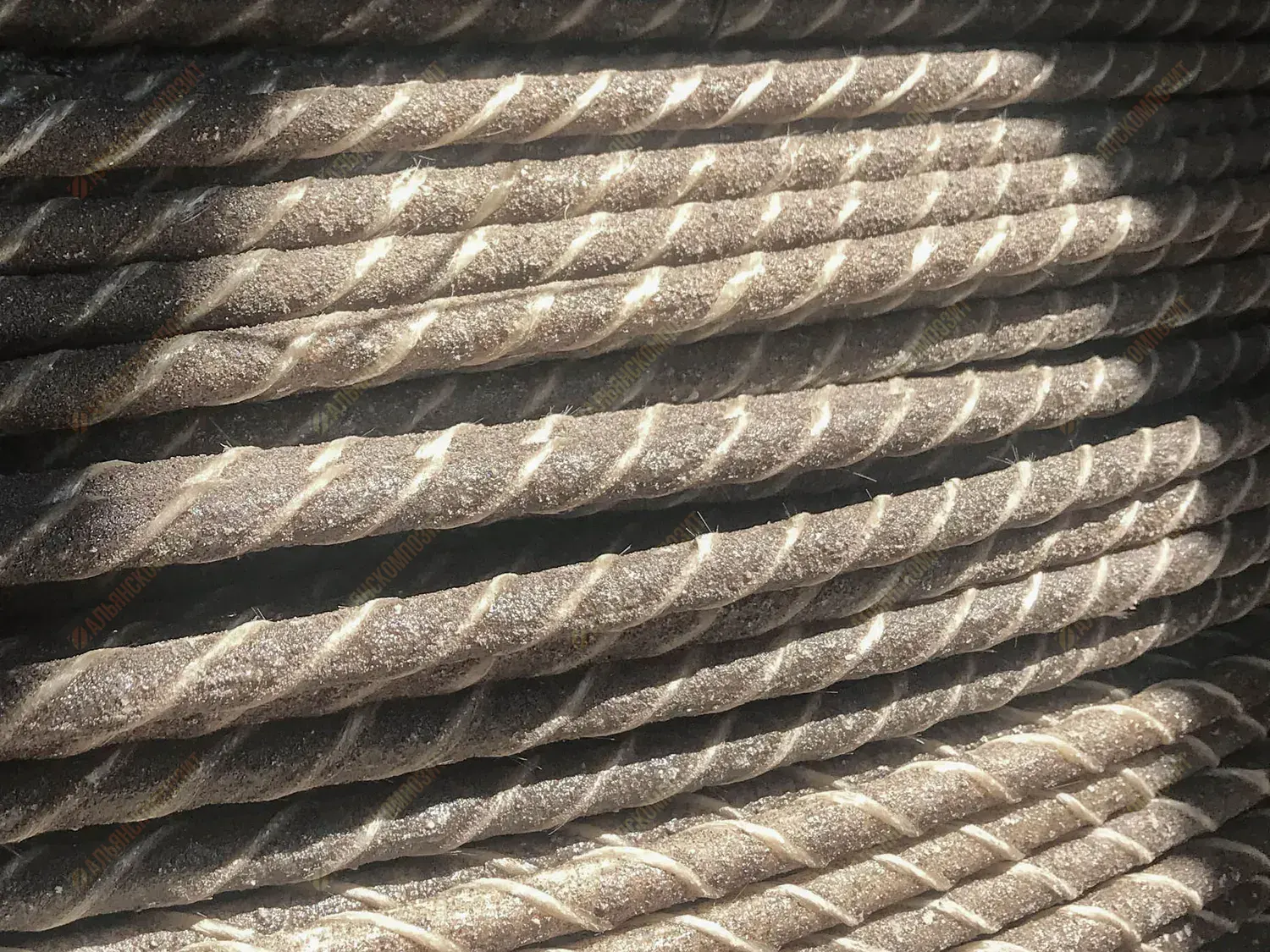 Материал стержня: стеклоровинг. Для уплотнения стеклянных волокон в стержне арматуры жгут стеклопластика перетянут нитью.