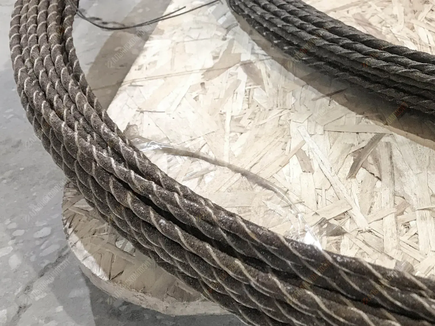 Материал стержня: стеклоровинг. Для уплотнения стеклянных волокон в стержне арматуры жгут стеклопластика перетянут нитью.