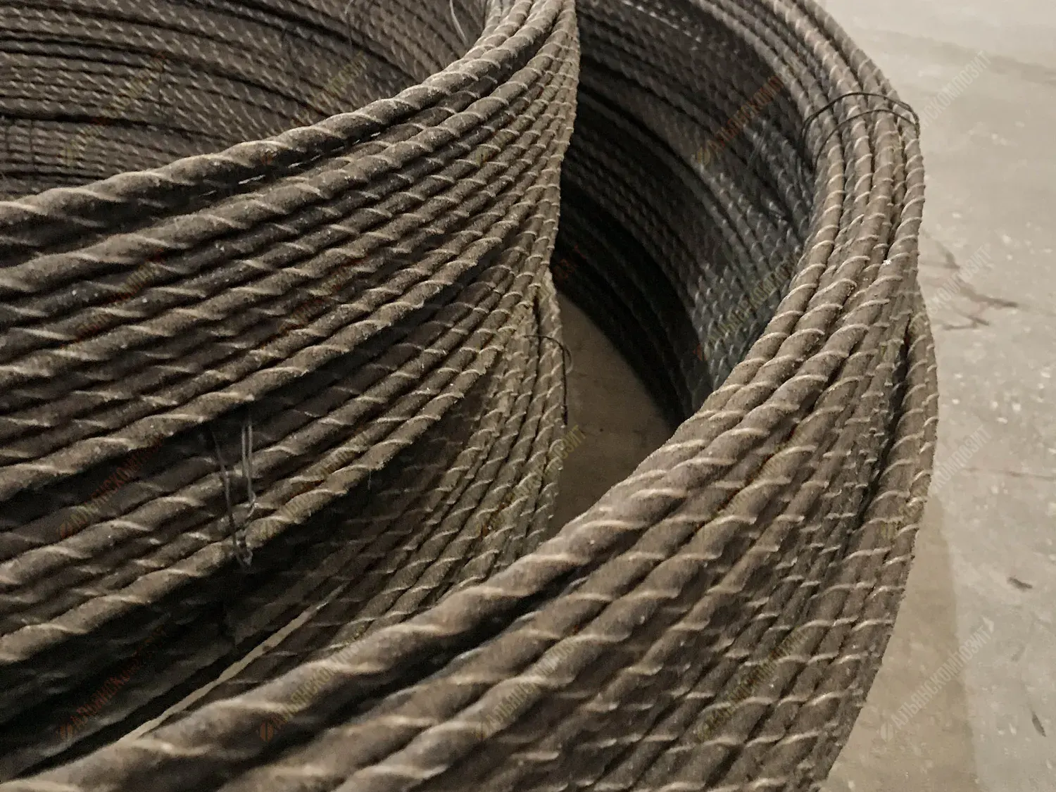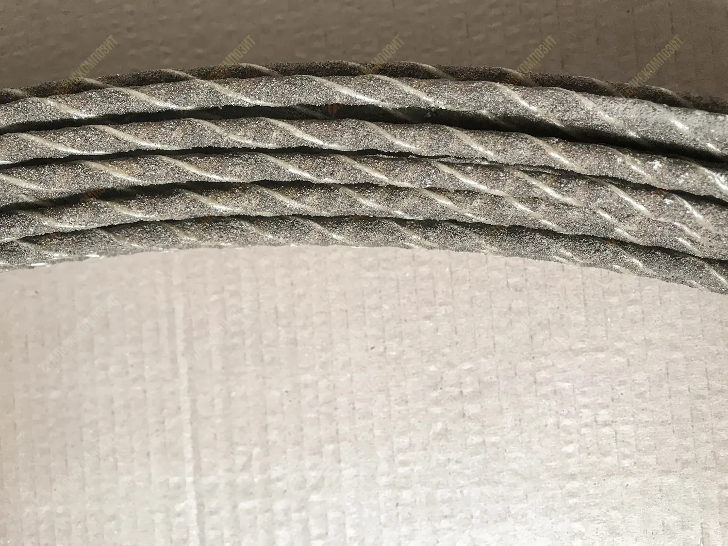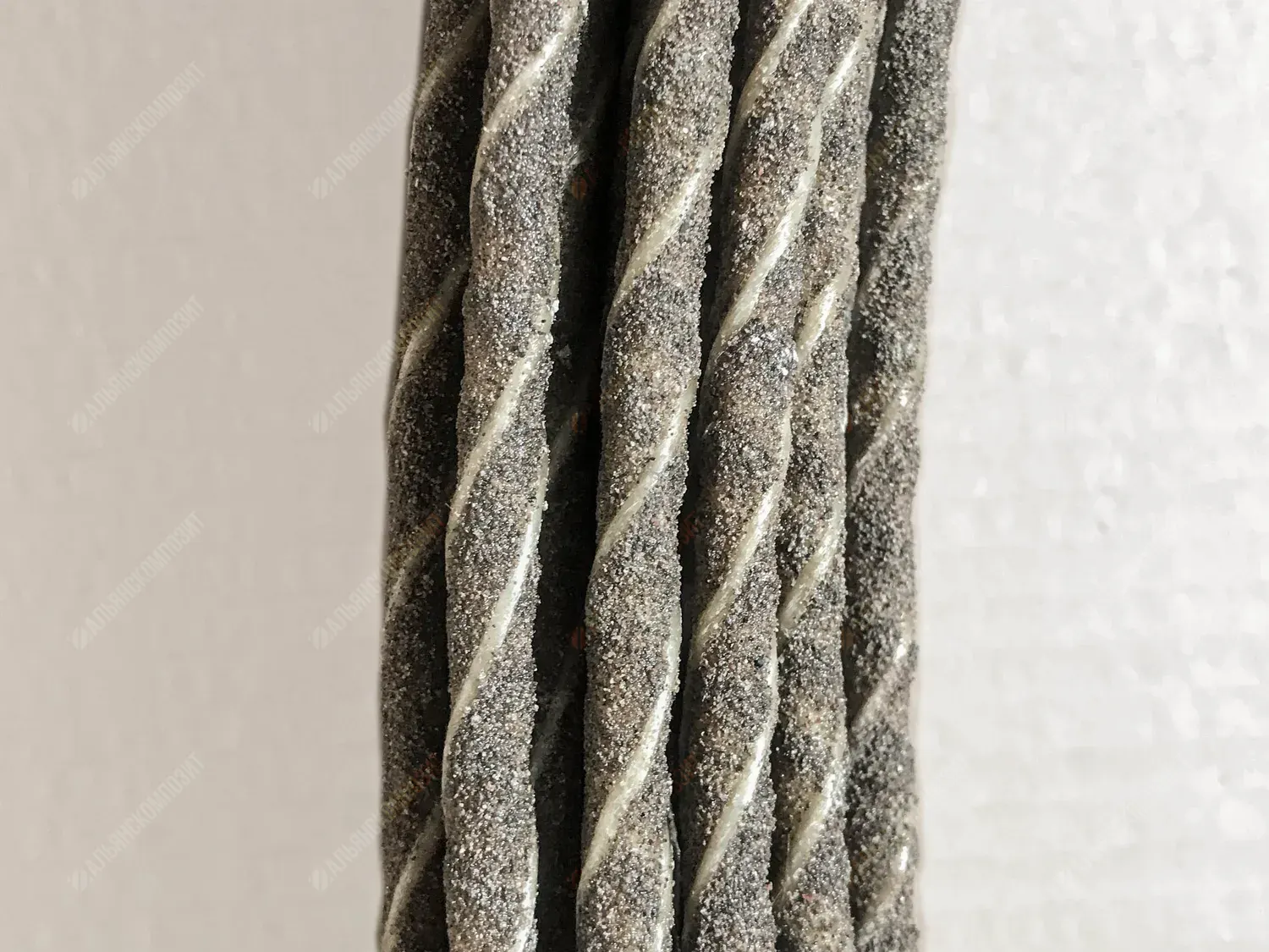 Материал стержня: стеклоровинг. Для уплотнения стеклянных волокон в стержне арматуры жгут стеклопластика перетянут нитью.