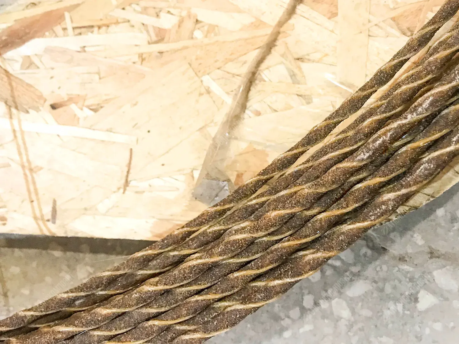 Материал стержня: стеклоровинг. Для уплотнения стеклянных волокон в стержне арматуры жгут стеклопластика перетянут нитью.